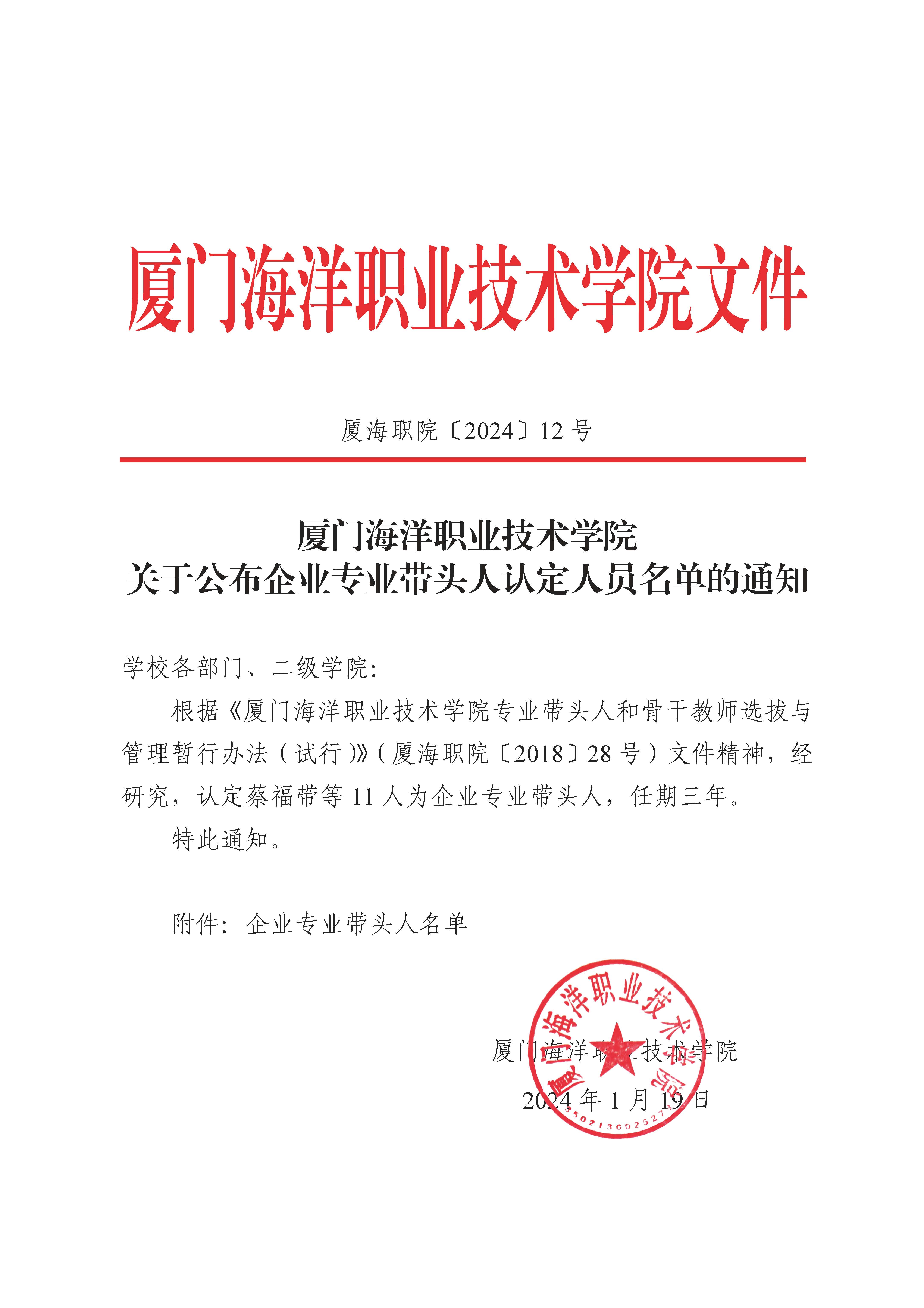 1月19日,廈門(mén)海洋職業(yè)技術(shù)學(xué)院公布企業(yè)專(zhuān)業(yè)帶頭人認(rèn)定人員名單的通知,根據(jù)《廈門(mén)海洋職業(yè)技術(shù)學(xué)院專(zhuān)業(yè)帶頭人和骨干教師選拔與管理暫行辦法(試行)》(廈海職院〔2018〕28號(hào))文件精神,認(rèn)定鳳凰創(chuàng)壹董事......