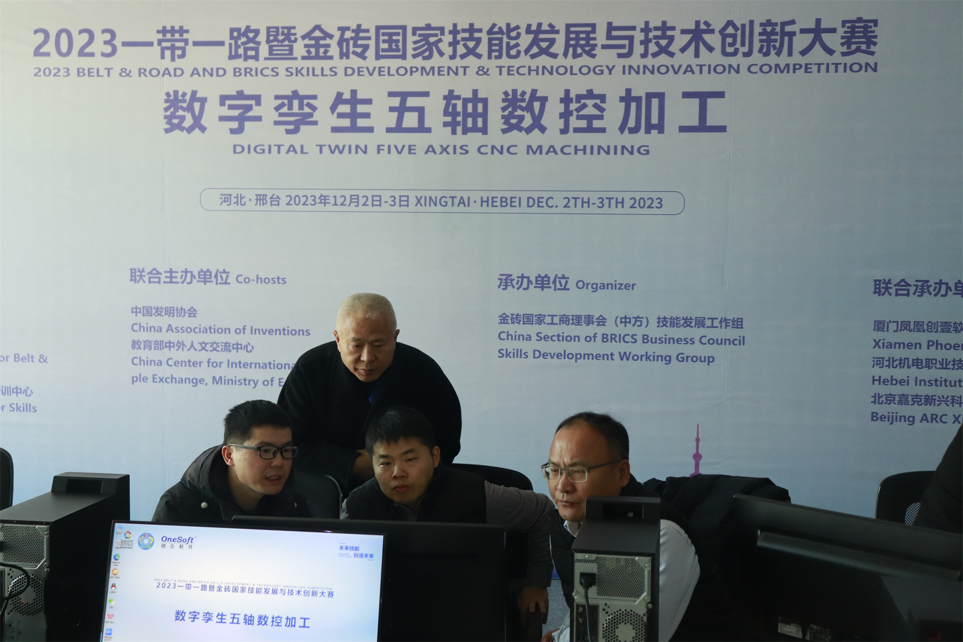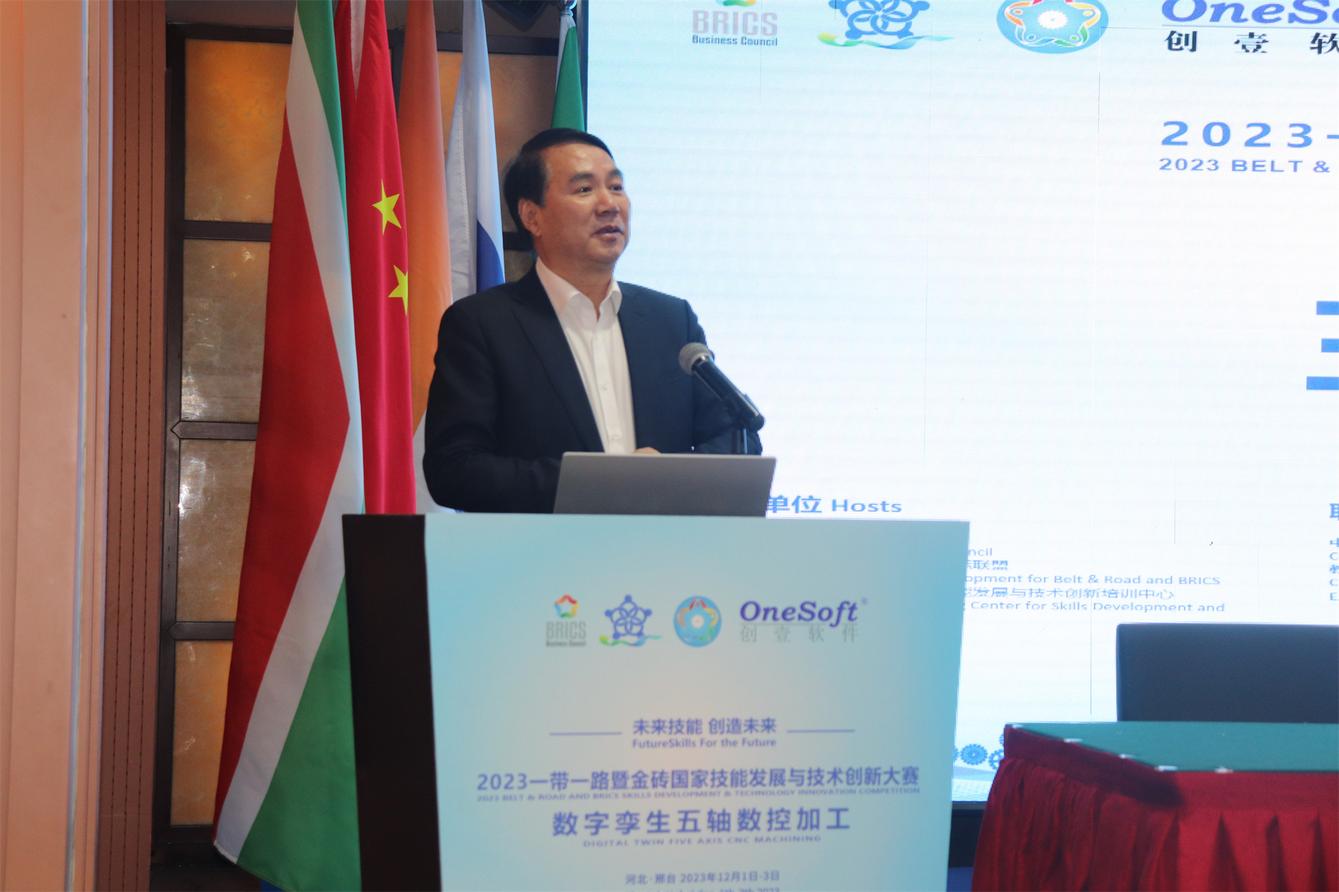 12月1日,2023一帶一路暨金磚國家技能發(fā)展與技術(shù)創(chuàng)新大賽數(shù)字孿生五軸數(shù)控加工賽項國內(nèi)決賽開幕式在萬峰大酒店舉行,由河北機(jī)電職業(yè)技術(shù)學(xué)院副院長李朝鵬主持。金磚國家工商理事會(中方)技能發(fā)展工作組組長、金磚國家技能發(fā)展與技術(shù)創(chuàng)新大賽組委會執(zhí)委會主席劉振英視頻致辭,中國教育國際交流協(xié)會副會長,前秘書長王永利、金磚國家技能發(fā)展與技術(shù)創(chuàng)新大賽組委會副主任何美連,河北省教育廳國際處劉江義處長、河北機(jī)電職業(yè)技術(shù)學(xué)院院長王曉鳳、廈門鳳凰創(chuàng)壹軟件有限公司運營總監(jiān)陳海寧等領(lǐng)導(dǎo)受邀出席并致辭。河北機(jī)電職業(yè)技術(shù)學(xué)院繼續(xù)教育部主任李成革、廈門鳳凰創(chuàng)壹軟件有限公司高級總監(jiān)江蕓梅等領(lǐng)導(dǎo)出席開幕式,仲裁長、總裁判長及裁判組成員、行業(yè)專家、參賽院校領(lǐng)隊、指導(dǎo)老師、參賽選手等近百人參加了開幕式。