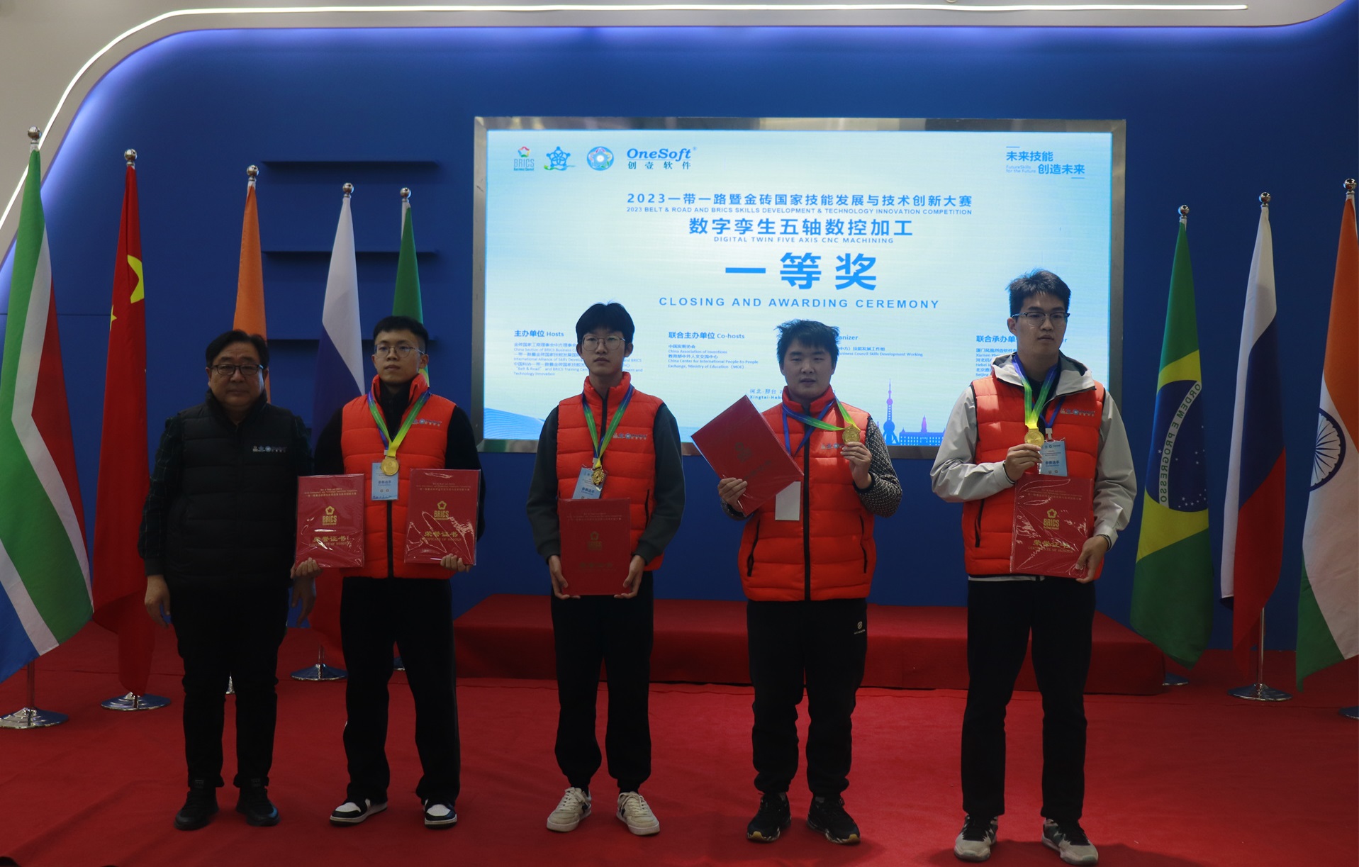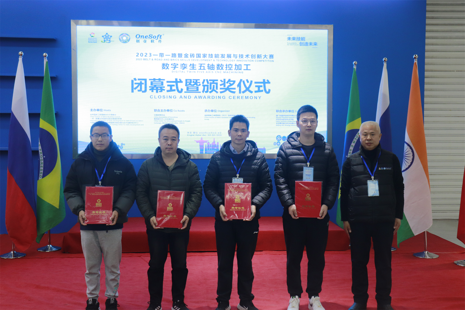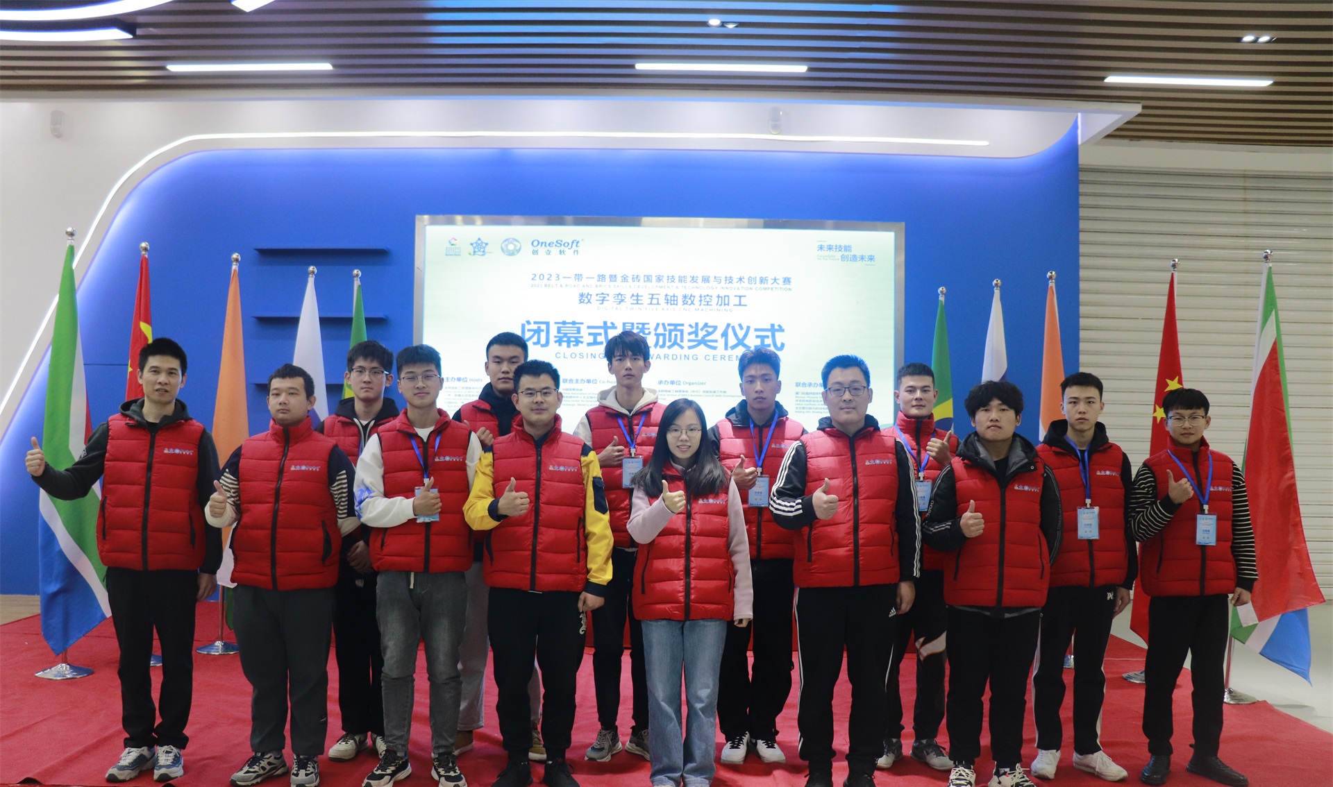 數(shù)字孿生五軸數(shù)控加工賽項于2023年7月開始組織籌備,歷經(jīng)技術(shù)方案評審、選手賽前培訓(xùn)、裁判培訓(xùn),共有來自全國20多個省份49所院校200多名選手報名參加,最終36名選手進(jìn)入全國總決賽。在河北機(jī)電職業(yè)技術(shù)學(xué)院展開為期2天的榮耀對決,群英匯聚展現(xiàn)新時代新職業(yè)新工種技能人才風(fēng)采。最終決出一等獎4名、二等獎8名、三等獎11名、優(yōu)秀獎14名,優(yōu)秀指導(dǎo)老師12名,最佳組織獎4個,優(yōu)秀組織獎4個,突出貢獻(xiàn)獎2個,競賽支持獎1個。