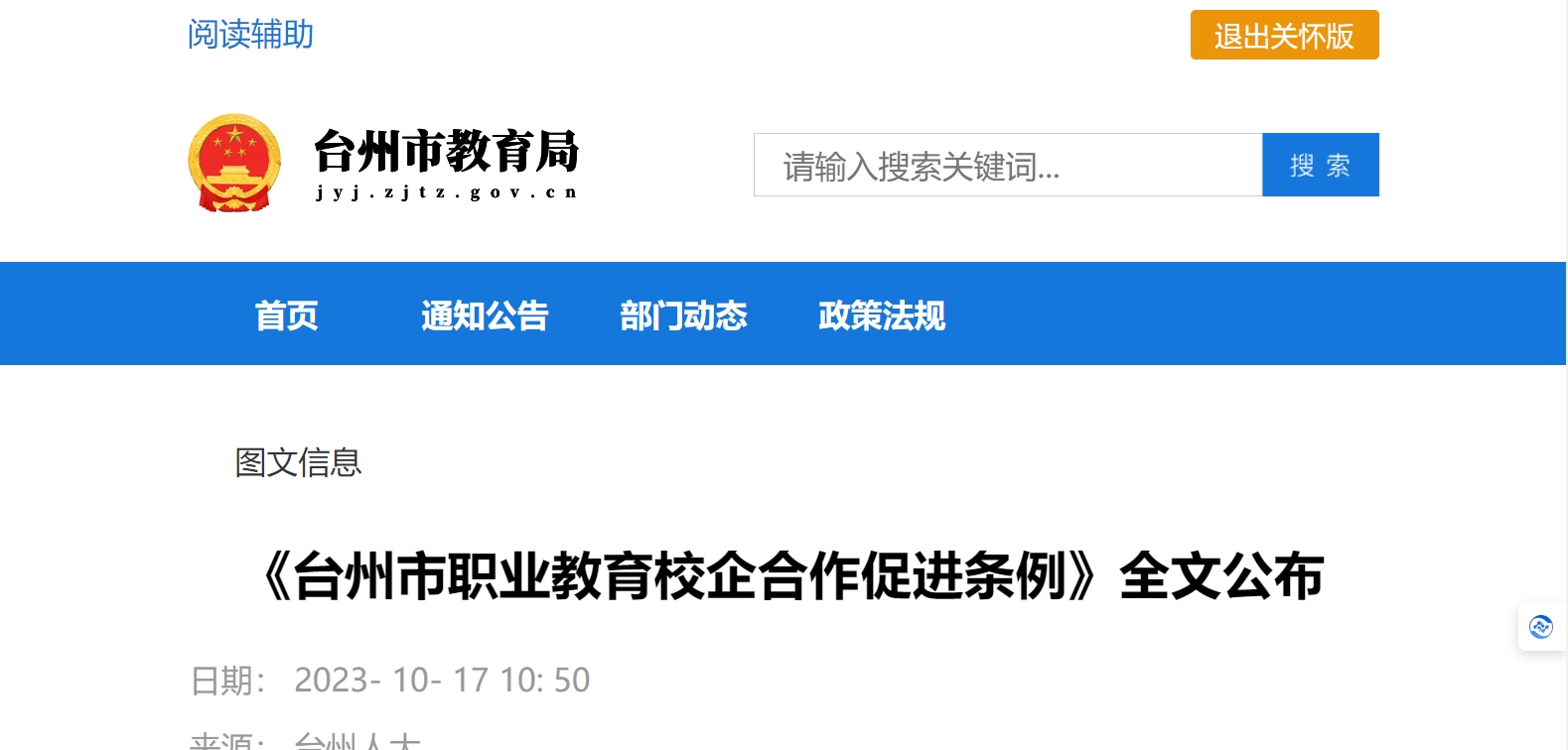 日前,經(jīng)浙江省第十四屆人民代表大會常務(wù)委員會第五次會議批準(zhǔn),浙江臺州正式發(fā)布職業(yè)教育校企合作促進(jìn)條例共25條,定于2024年1月1日起實(shí)施。