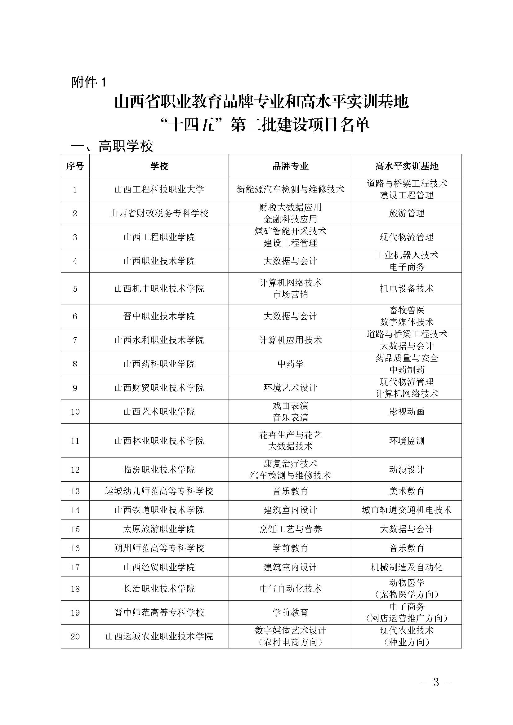近日,山西省教育廳公布山西省職業(yè)教育品牌專業(yè)和高水平實(shí)訓(xùn)基地“十四五”第二批建設(shè)項(xiàng)目名單的通知,高職學(xué)校38所,中職學(xué)校71所,10個(gè)自籌項(xiàng)目。