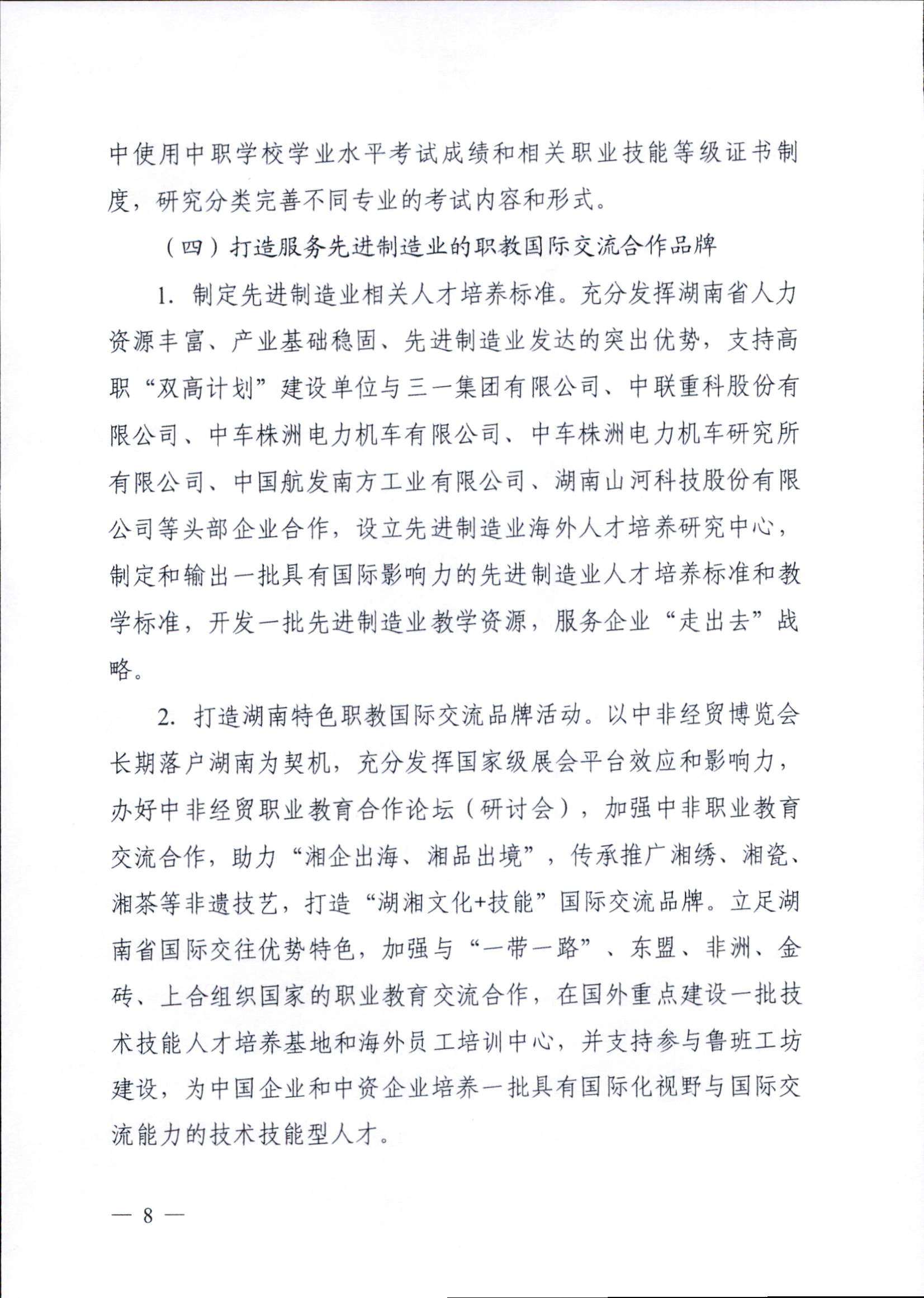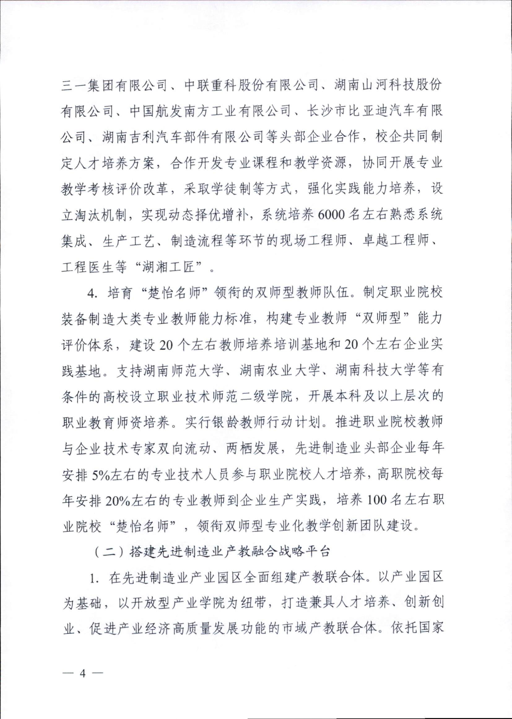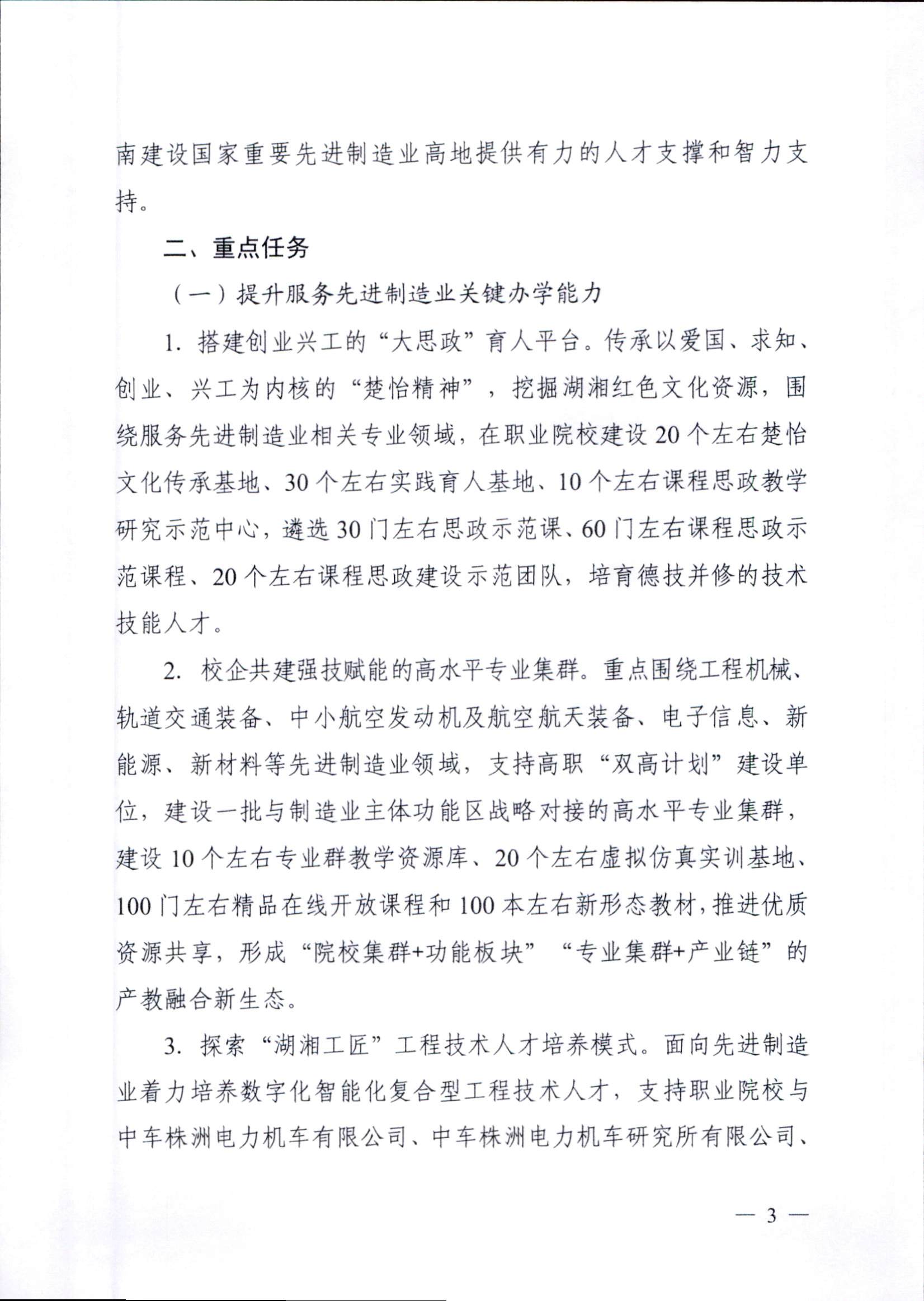 為深入學(xué)習(xí)貫徹黨的二十大精神,落實(shí)《關(guān)于深化現(xiàn)代職業(yè)教育體系建設(shè)改革的意見(jiàn)》,進(jìn)一步深化職業(yè)教育產(chǎn)教融合,助力國(guó)家重要先進(jìn)制造業(yè)高地建設(shè),依據(jù)《中華人民共和國(guó)職業(yè)教育法》,教育部和湖南省人民政府特制定本實(shí)施方案。其中重要任務(wù)中提及:2.校企共建強(qiáng)技賦能的高水平專(zhuān)業(yè)集群。重點(diǎn)圍繞工程機(jī)械、軌道交通裝備、中小航空發(fā)動(dòng)機(jī)及航空航天裝備、電子信息、新能源、新材料等先進(jìn)制造業(yè)領(lǐng)域,支持高職“雙高計(jì)劃”建設(shè)單位,建設(shè)一批與制造業(yè)主體功能區(qū)戰(zhàn)略對(duì)接的高水平專(zhuān)業(yè)集群,建設(shè)10個(gè)左右專(zhuān)業(yè)群教學(xué)資源庫(kù)、20個(gè)左右虛擬仿真實(shí)訓(xùn)基地、100門(mén)左右精品在線開(kāi)放課程和100本左右新形態(tài)教材,推進(jìn)優(yōu)質(zhì)資源共享,形成“院校集群+功能板塊”“專(zhuān)業(yè)集群+產(chǎn)業(yè)鏈”的產(chǎn)教融合新生態(tài)。