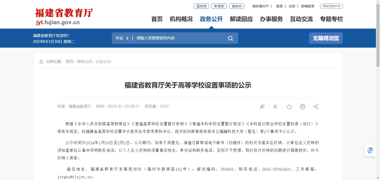 2024年1月29日,福建省教育廳官方網(wǎng)站發(fā)布《福建省教育廳關(guān)于高等學(xué)校設(shè)置事項的公示》。公示中稱,根據(jù)《中華人民共和國高等教育法》《普通高等學(xué)校設(shè)置暫行條例》《普通本科學(xué)校設(shè)置暫行規(guī)定》《本科層次職業(yè)學(xué)校設(shè)置標(biāo)準(zhǔn)(試行)》等有關(guān)規(guī)定,經(jīng)福建省高等學(xué)校設(shè)置評議委員會專家考察和評議,現(xiàn)對擬向教育部申報設(shè)立福耀科技大學(xué)(暫名)等2個事項予以公示。