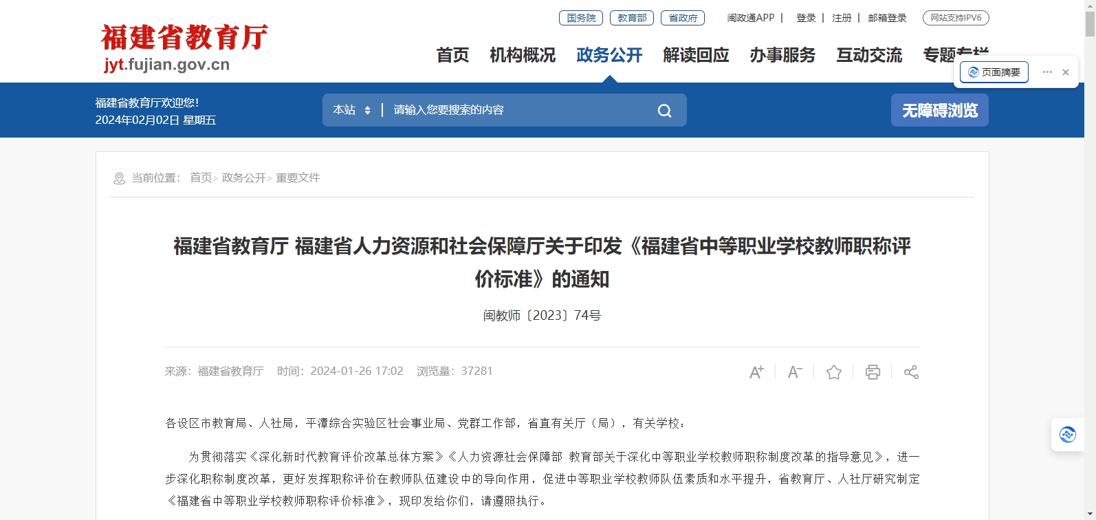 第六十二條 本文自印發(fā)之日起實施,《關(guān)于印發(fā)<福建省中等職業(yè)學校教師水平評價標準條件(試行)>、<福建省中等職業(yè)學校實習指導教師水平評價標準條件(試行)>的通知》(閩教人〔2014〕81號)同時并行至2024年12月31日后廢止。