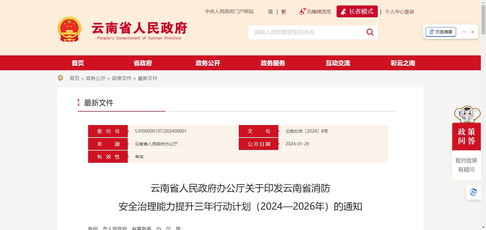 云南省人民政府辦公廳關(guān)于印發(fā)云南省消防 安全治理能力提升三年行動計(jì)劃(2024—2026年)的通知