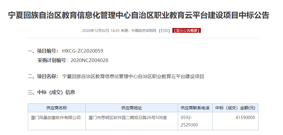 4159萬元!鳳凰創(chuàng)壹中標(biāo)寧夏職業(yè)教育云平臺(tái)項(xiàng)目