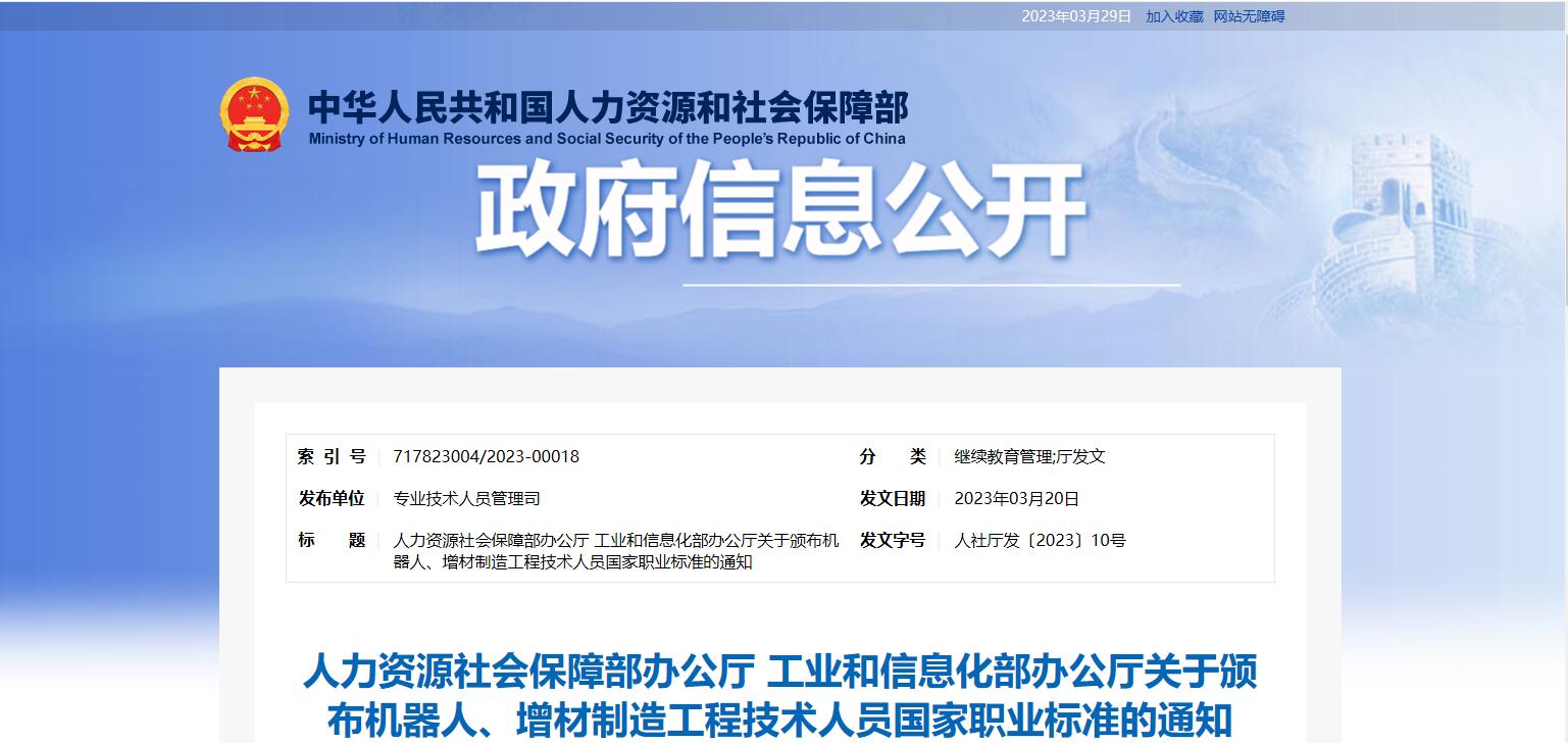 機(jī)器人、增材制造工程技術(shù)人員等4個(gè)國家職業(yè)標(biāo)準(zhǔn)頒布