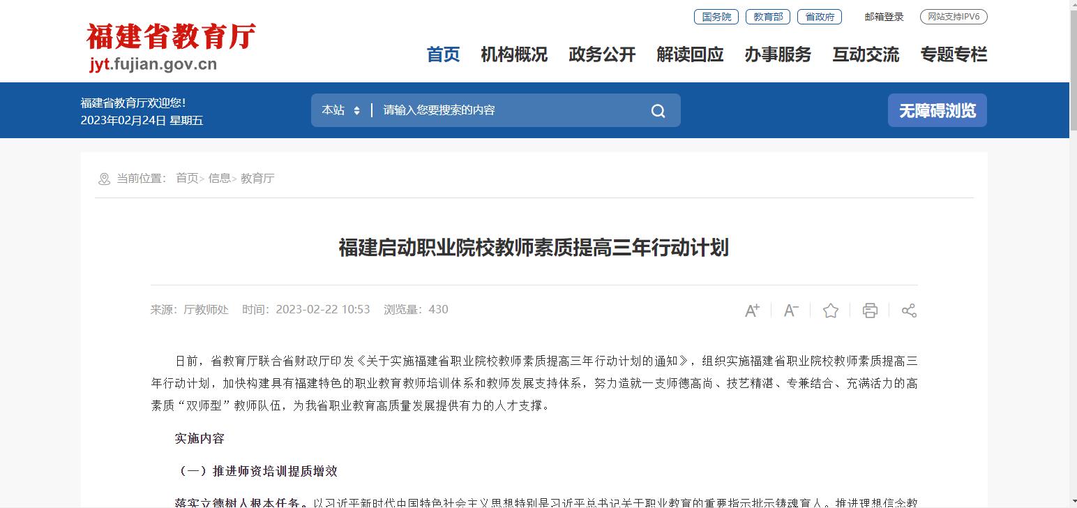 近日,福建啟動職業(yè)院校教師素質提高三年行動計劃,提出加快推進知識技能更新、提升教師“雙師”素質、暢通教師校企雙向流動、打造職業(yè)教育領軍人才隊伍、創(chuàng)新職教教師培訓模式等實施內容。 ......